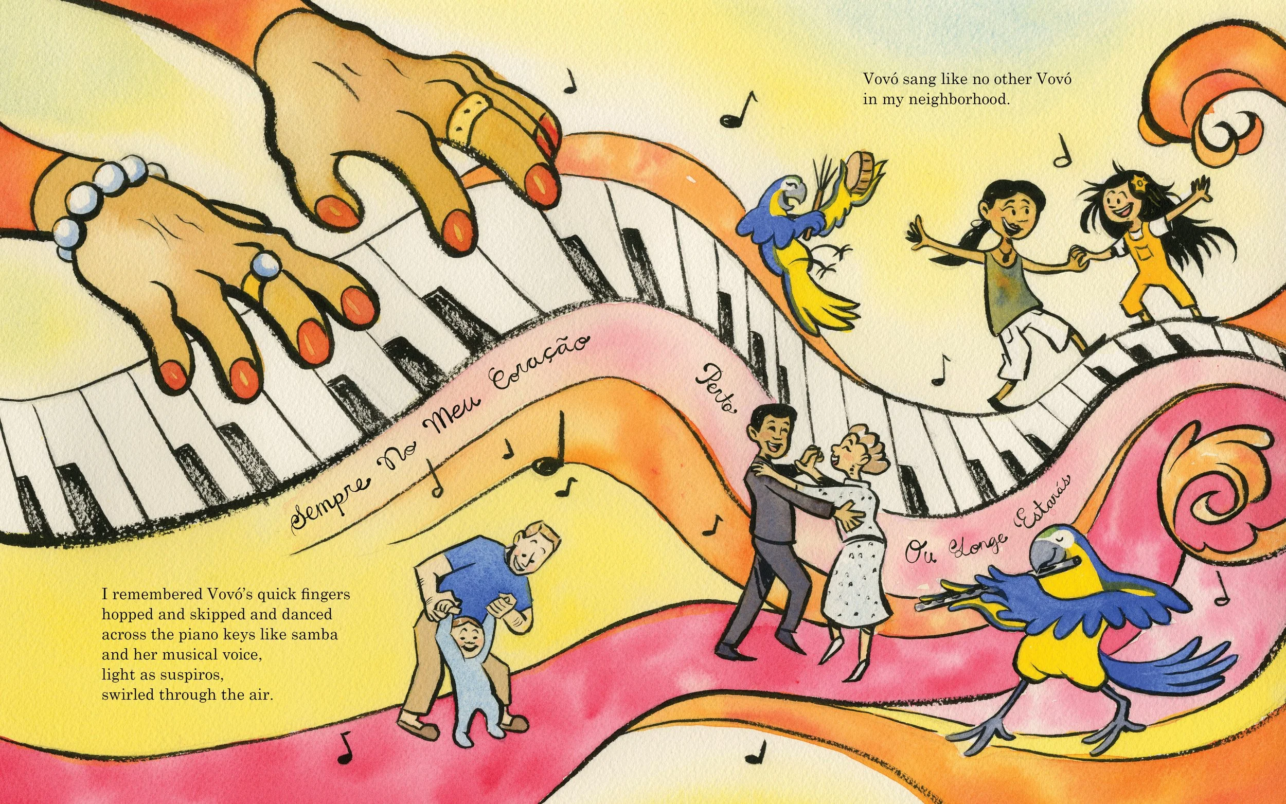 After moving to a new home, a little girl feels like a puzzle piece that doesn’t fit. By looking through family photo albums with mamãe, the girl remembers her Brazilian family. She remembers Vovó’s fingers dancing across piano keys, Vovô’s thoughtful drawings, her primos’ laughter like windchimes… and how everything around her is different. Will she find where she belongs?